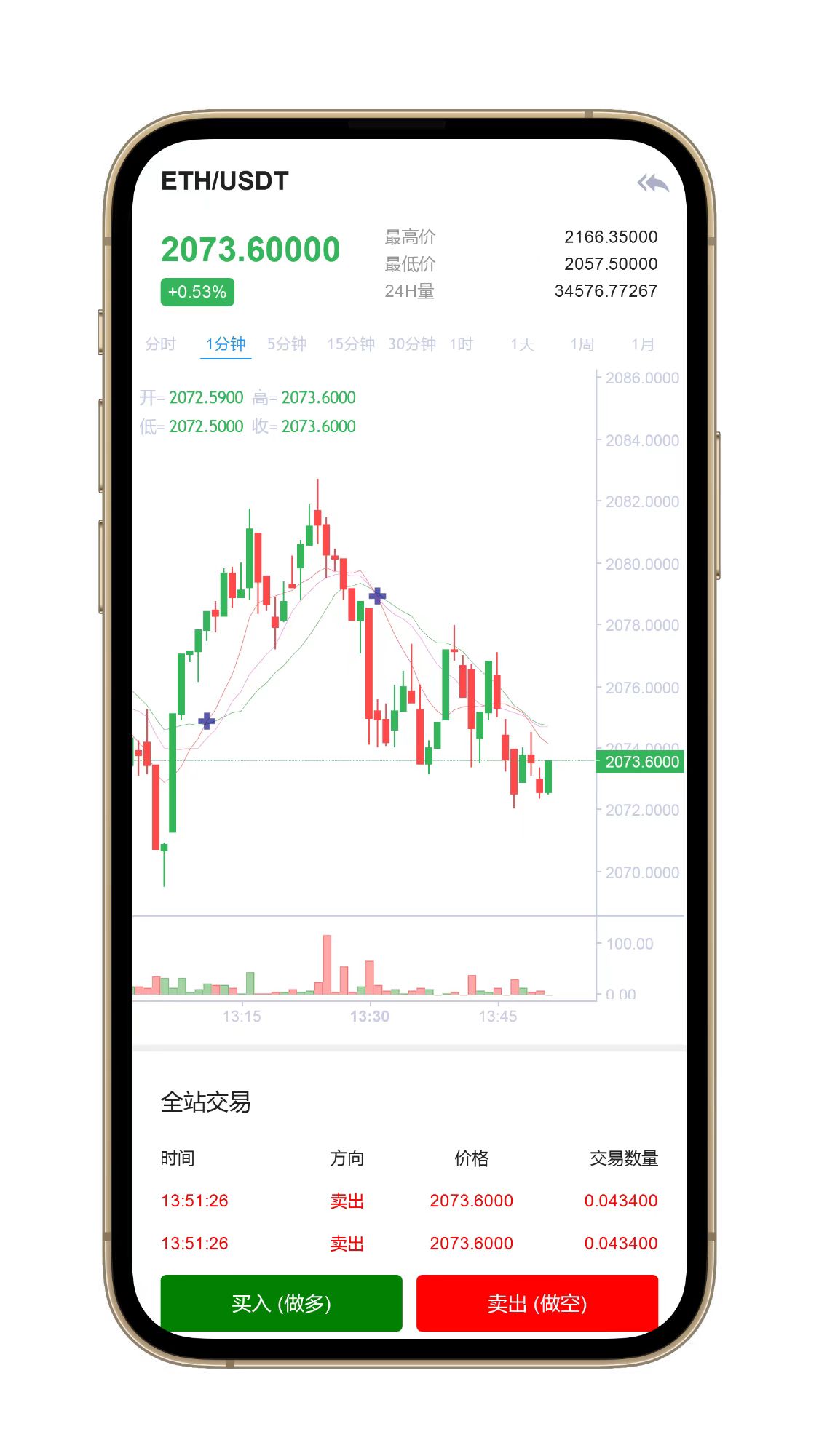 2:交易⾏情,K线功能 3:我的资产功能(充币、提币、划转);