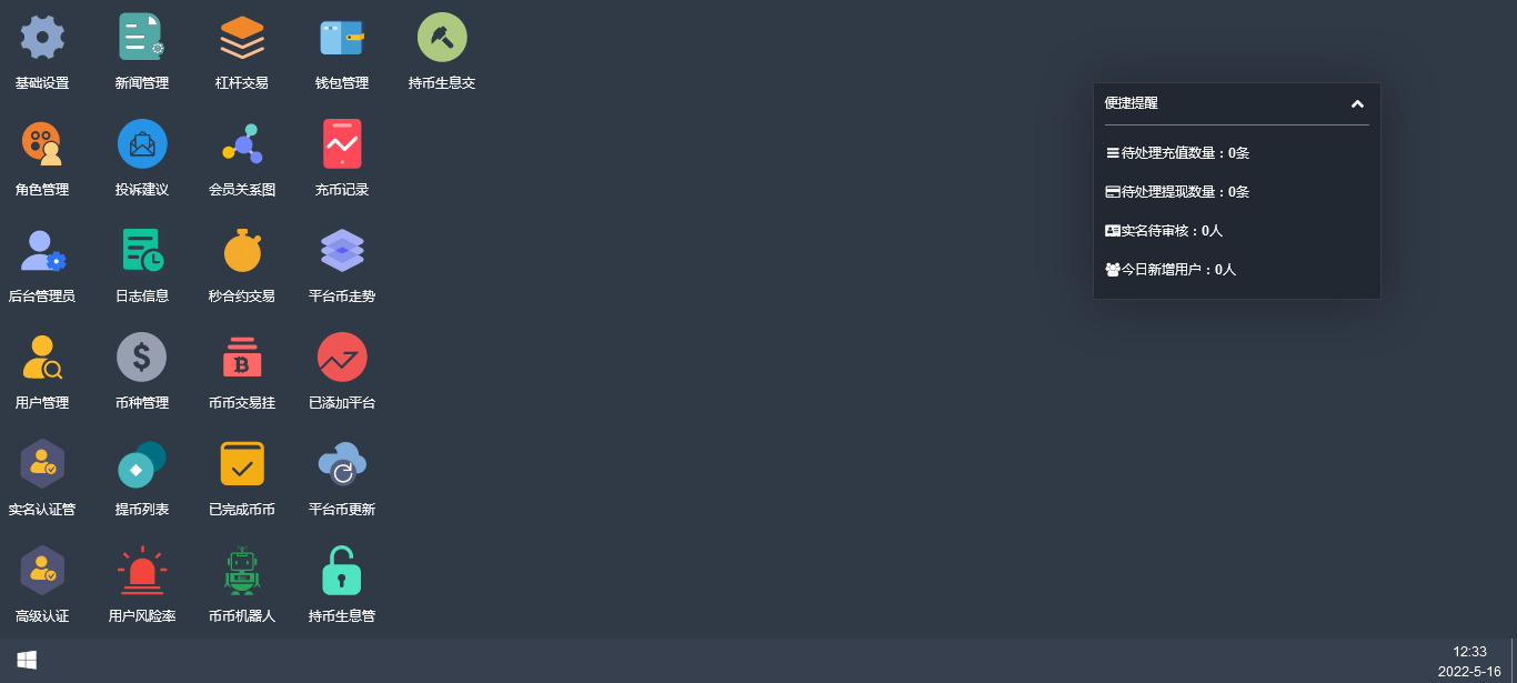 8:后台首页新增⽤户 充值 提现 实名认证信息提醒;等等