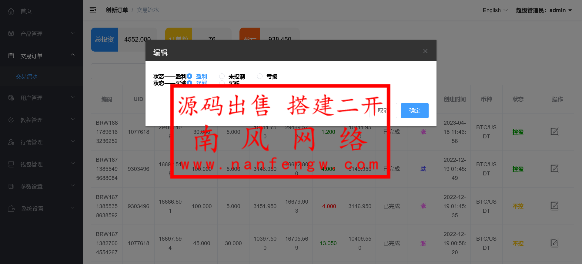 客户定制开发的,这套系统国外一直在运营!可控制买涨买跌