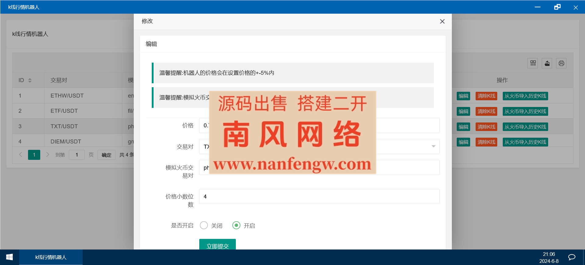 增加了平台币 平台币实时控制涨跌功能 导入火币历史K线 幸运大转盘 站内信息通知等功能
