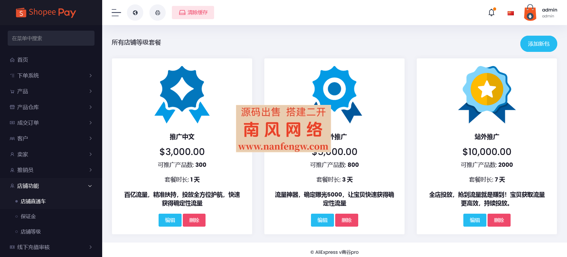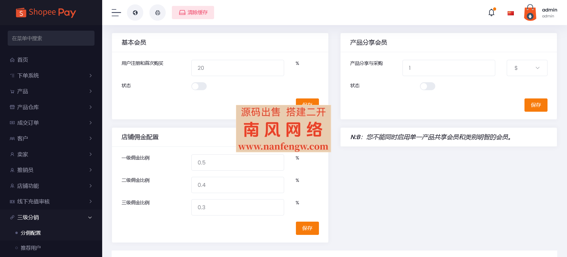 带有 直通车+店铺保证金+三级分销+增加业务员代理功能