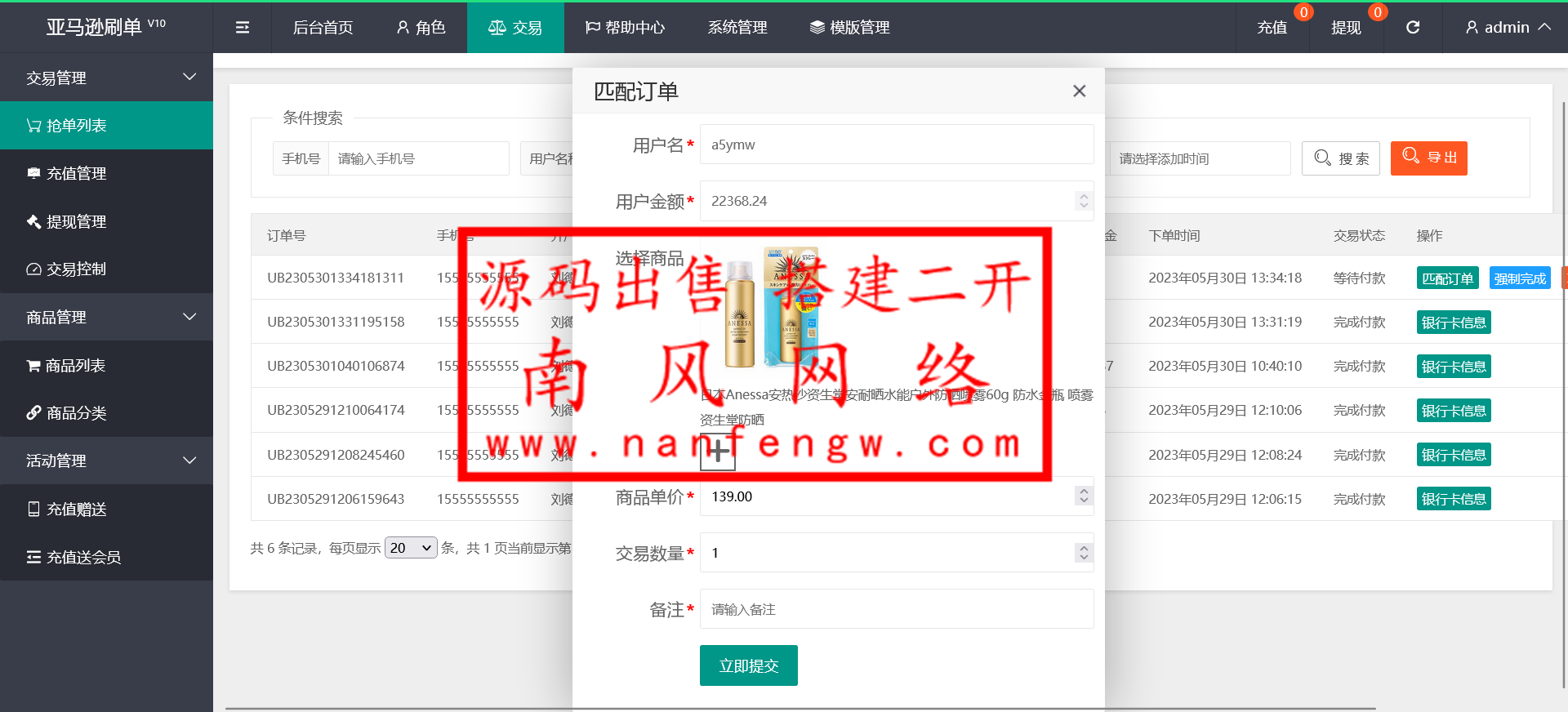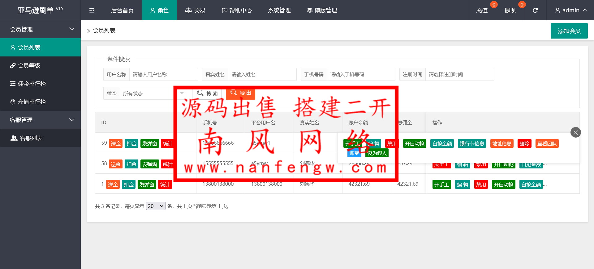 当前位置:南风网络-精品海外源码网 精品资源 手动派单亚马逊刷单抢单系统 多语言刷单系统/商城刷单/酒店刷单/app刷单 手动派单亚马逊刷单抢单系统 可设置开启自动抢单模式 也可手动派单指定商品免责声明:1.本站提供的一切源码、教程和内容信息仅限用于学习和研究目的;不得将上述内容用于商业或者非法用途! 2.本站信息来自网络收集整理,版权争议与本站无关。您必须在下载后的24个小时之内,从您的电脑或手机中彻底删除上述内容! 3.本站提供的源码,模板,插件等其他资源都不包含技术服务,敬请谅解! 4.本站资源售价只是赞助,收取费用仅维持本站日常运营所需! 5.本站不保证所提供下载的资源准确性安全性和完整性,源码仅供下载学习之用! 6.如用于商业或者非法用途,与本站无关。一切后果请自行负责! 抢单 刷单 亚马逊 南风网络-精品海外资源网内容投诉南风网络-精品海外源码网 » 手动派单亚马逊刷单抢单系统