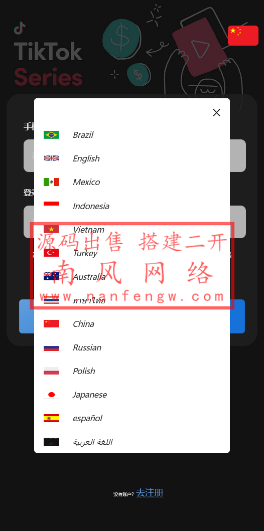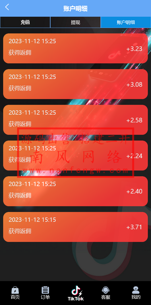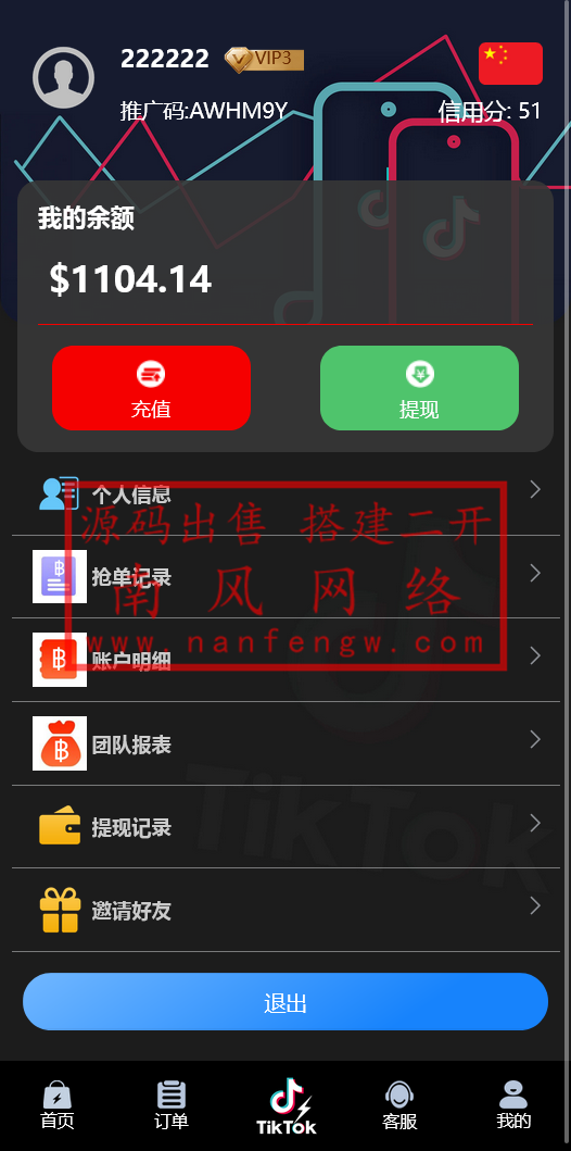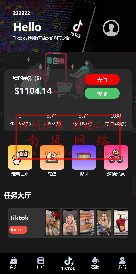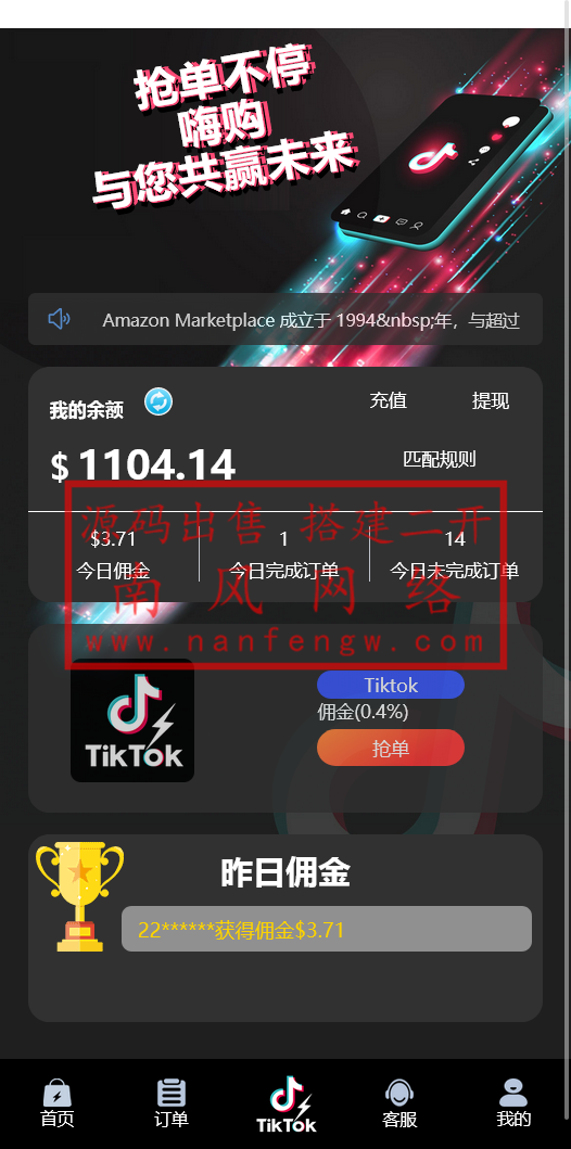 当前位置:南风网络-精品海外源码网 精品资源 多语言TIKTOK抢单刷单系统 多语言刷单系统/商城刷单/酒店刷单/app刷单 独家二开新UI多语言TIKTOK抢单刷单系统带预约爆弹功能 爆单金额可自由设置!免责声明:1.本站提供的一切源码、教程和内容信息仅限用于学习和研究目的;不得将上述内容用于商业或者非法用途! 2.本站信息来自网络收集整理,版权争议与本站无关。您必须在下载后的24个小时之内,从您的电脑或手机中彻底删除上述内容! 3.本站提供的源码,模板,插件等其他资源都不包含技术服务,敬请谅解! 4.本站资源售价只是赞助,收取费用仅维持本站日常运营所需! 5.本站不保证所提供下载的资源准确性安全性和完整性,源码仅供下载学习之用! 6.如用于商业或者非法用途,与本站无关。一切后果请自行负责! 抢单 刷单 亚马逊 南风网络-精品海外资源网内容投诉南风网络-精品海外源码网 » 多语言TIKTOK抢单刷单系统